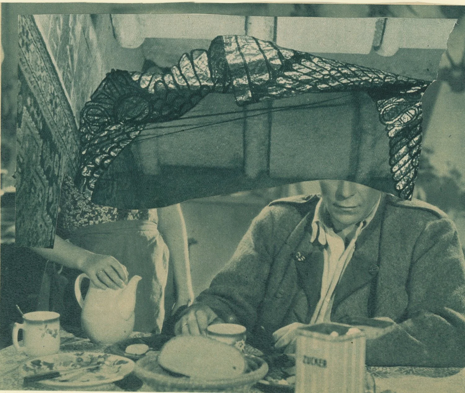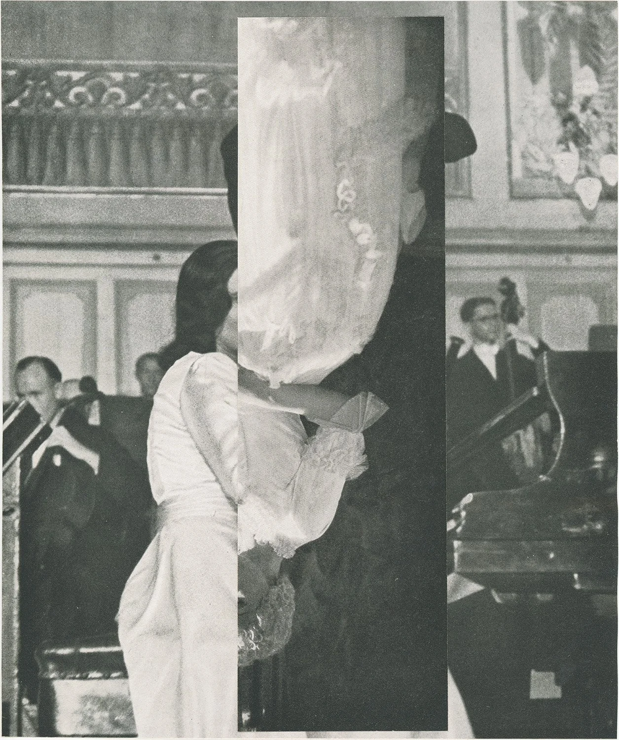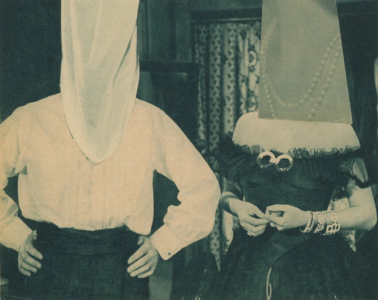 This work explores the unspoken tensions in intimate relationships — the struggle to express needs, the isolation within closeness, and the distance created by unmet expectations. Using vintage photos from a time of rigid gender roles, I obscure male faces to shift power and center female presence.