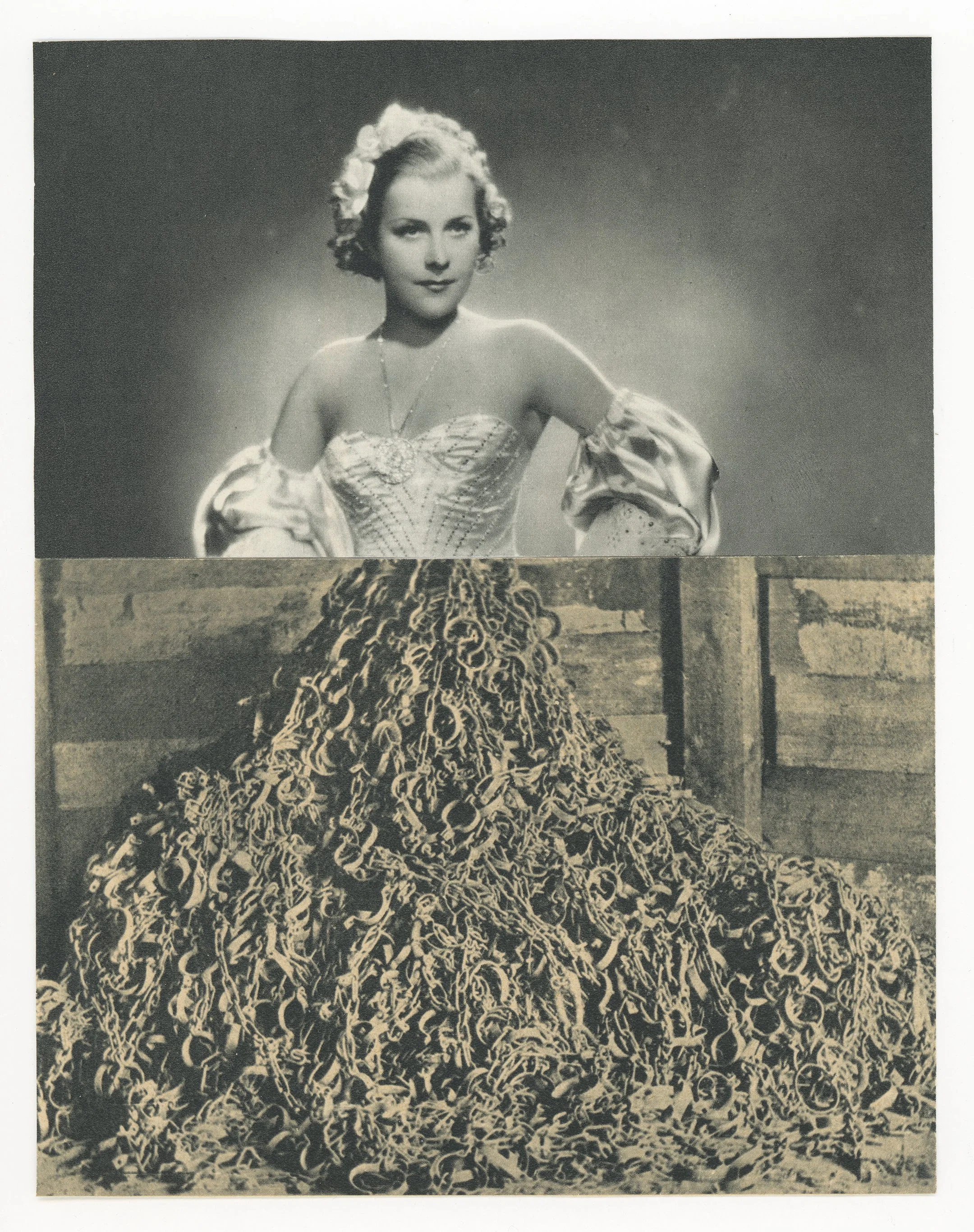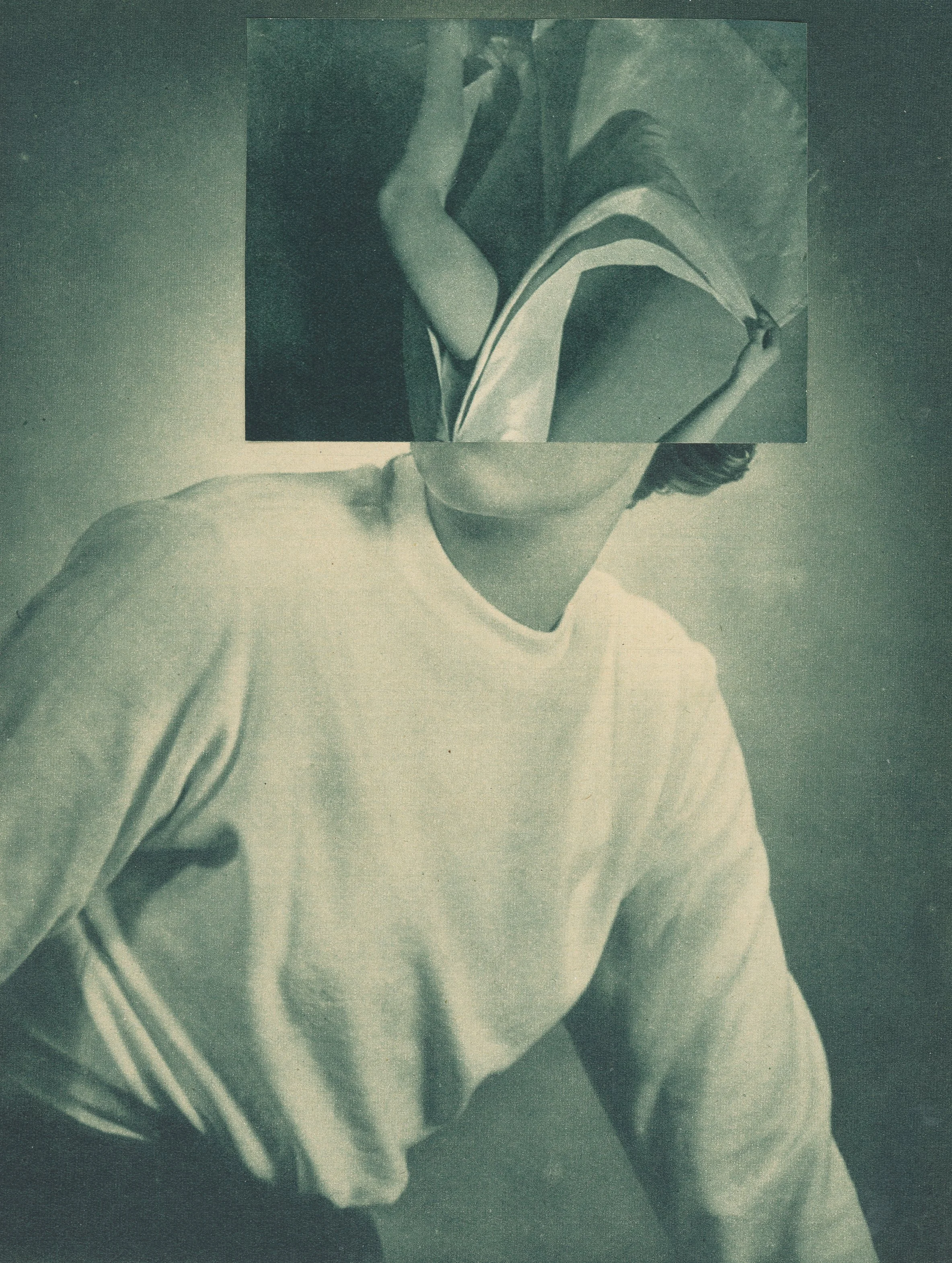 Women have long faced societal barriers that limit their ability to express their talents. These constraints—both past and present—have often shaped a sense of invisibility and self-doubt. Hiding/Hidden visualizes this tension using cutouts from old German cinema magazines, creating layered portraits that reflect the ongoing struggle between visibility, value, and identity.